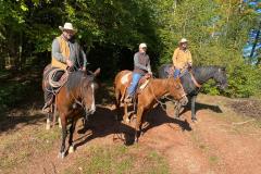 Pokud jste se někdy zúčastnili dobytkářských kurzů na Křížánkách, pak víte, že vždy začínáme prací bez krav, aby si koně zvykli na nové prostředí, na cizí koně a abychom si ověřili, že jezdec s koněm zvládají základní přiježděnost potřebnou celkově pro pohyb koně kolem krav. Teprve po té si přivedeme na jízdárnu také krávy. V případě, že je mezi koňmi nějaký začínající, který nikdy s dobytkem nepracoval, věnujeme se nejprve těmto koním a jejich seznámení s dobytkem (první bod). Po té pracujeme se stádem nebo s jednotlivými telaty, společně celá skupina jezdců nebo jednotliví jezdci a věnujeme se primárně bodu dvě – tedy pochopení psychických principů práce s dobytkem.