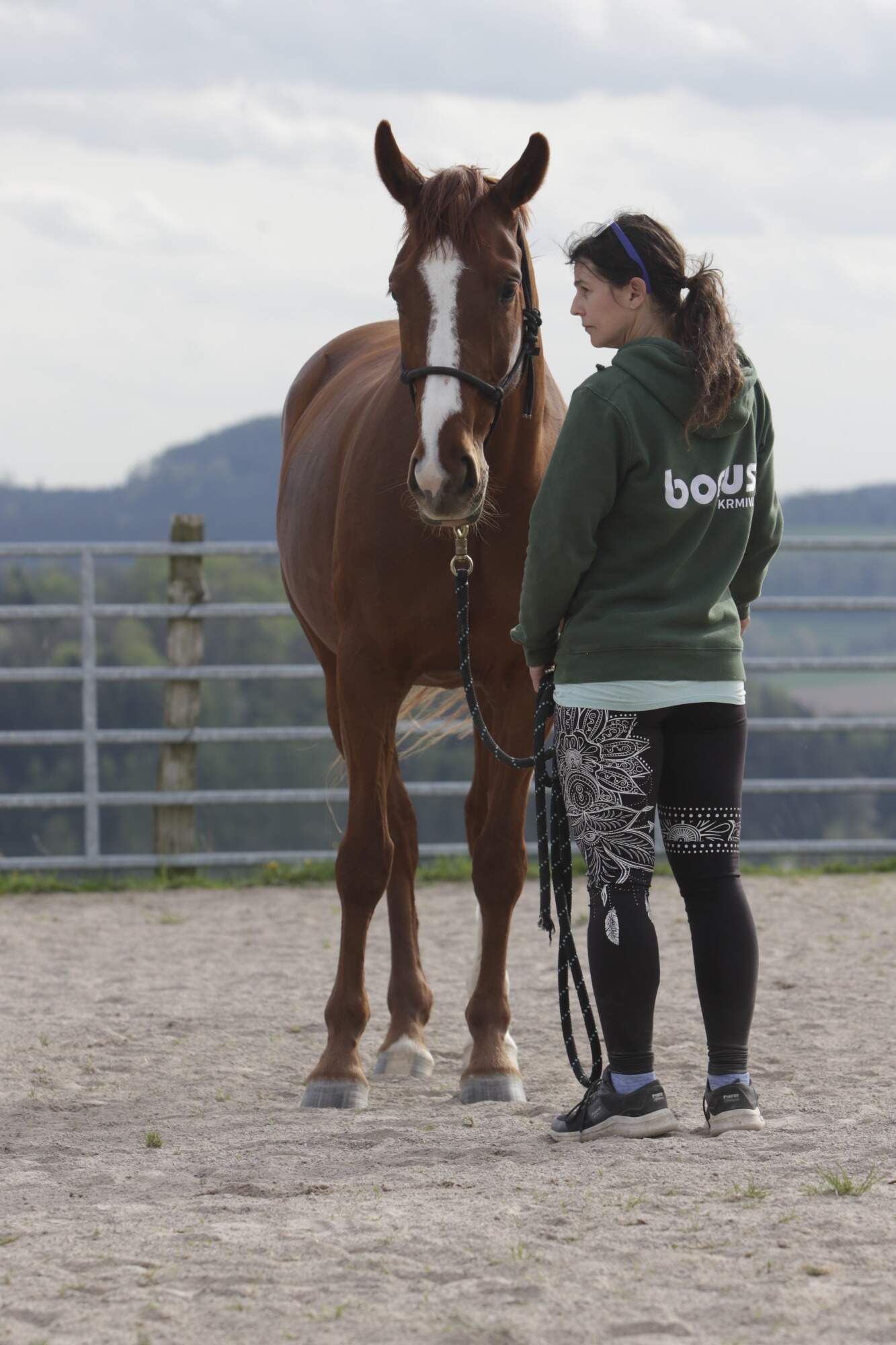 Začneme dubnovým kurzem s Káťou Molodovcovou. Ačkoli sama sedím v dobytkářském sedle, tréninky s Káťou, která pracuje obvykle spíše s anglicky zaměřenými jezdci, jsou pro mne díky propracovaným detailům a lehce odlišnému smýšlení oproti westernové mentalitě velkým přínosem a inspirací.