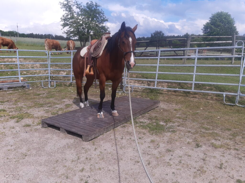 Ježděn ve westernu, ale slušelo by mu i anglické sedlo. Byl by vhodný i pro nižší soutěže v drezuře či parkuru.