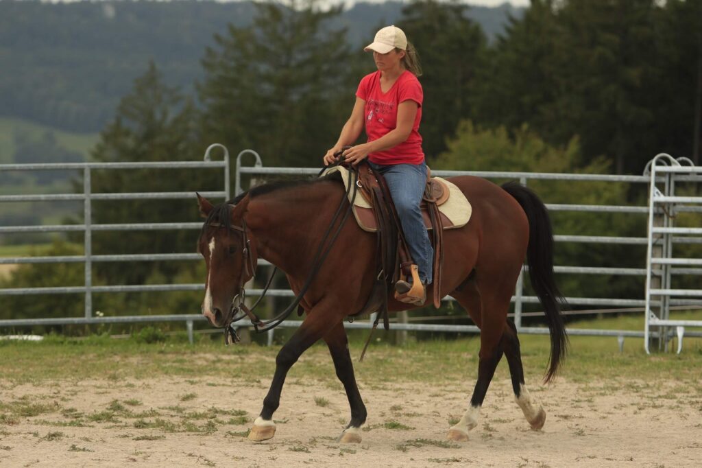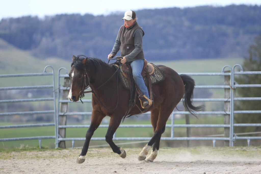 Vyšší kůň, velmi pohodlný ve všech chodech. Na vyjížďkách zvyklý na doprovod psů, neleká se traktorů a pod, nemá problém jít první, ani se zařadit do skupiny.